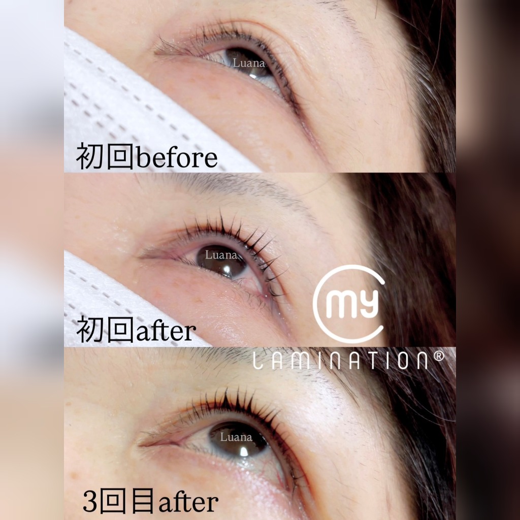 施術の度に自まつ毛が1回のトリートメントで30〜50%太くなり、ハリ、ツヤがでて元気になります!